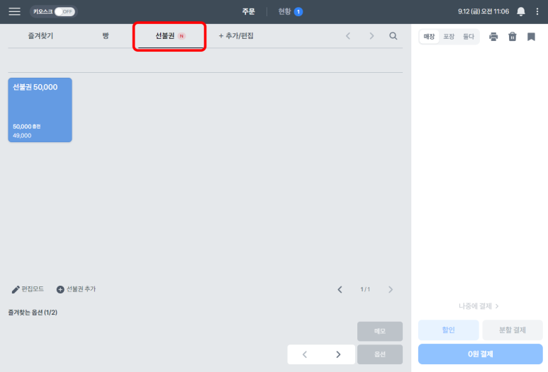 이런 여러 기능 중에 이번 글에서는 '선불권' 기능을 알아보겠습니다.