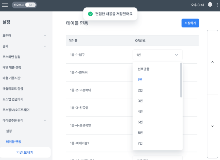 무료로 받은 QR스티커 바코드 숫자 입력 > 해당 스티커의 테이블 번호 지정해주시면 끝!