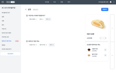 또는 '함께 담기 좋은 메뉴'로 구매 유도도 가능합니다.